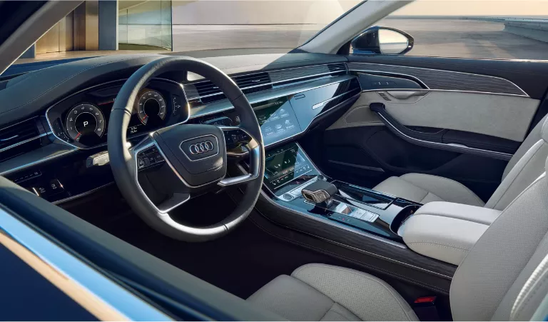 Audi offers several ways to personalize the A8. Exterior choices include multiple alloy wheel designs and premium paint finishes. Inside, customers can choose from different leather colors, wood inlays, and ambient lighting themes. Optional packages like the Executive Package or Luxury Package further enhance comfort and styling.
