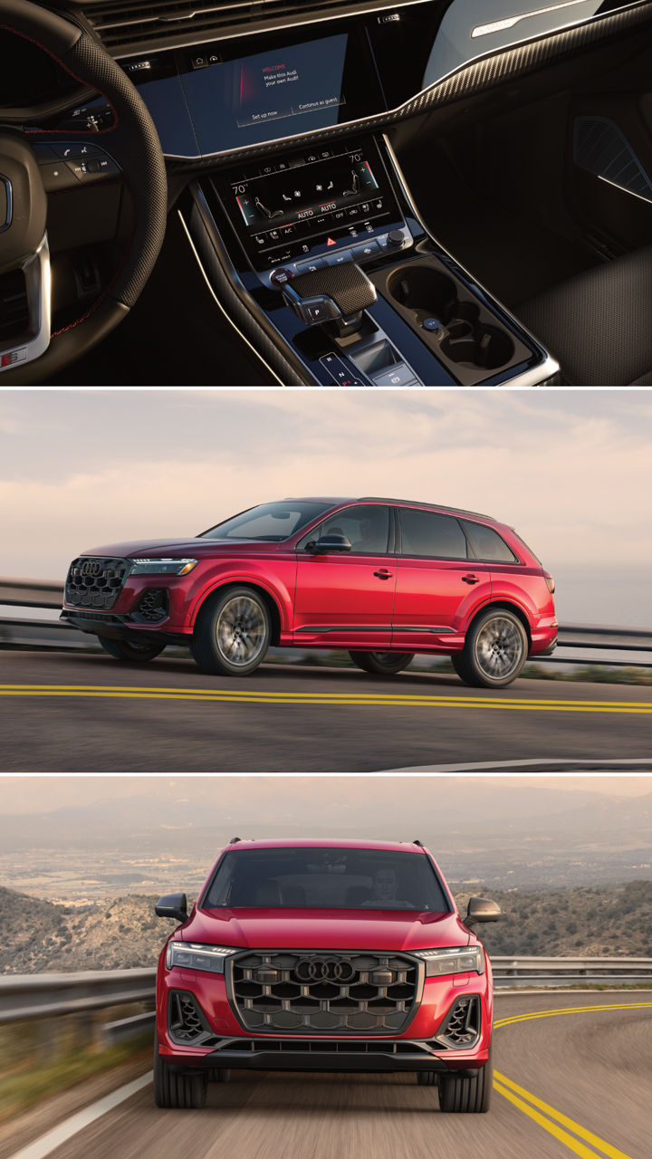 The 2025 Audi SQ7 is where practicality meets exhilarating performance. As the performance-focused sibling of the Audi Q7, the SQ7 transforms the luxury three-row SUV into a thrilling driving machine without sacrificing the refinement, comfort, and versatility that families and professionals alike expect. For drivers who need space for passengers and cargo but also crave a dynamic edge, the SQ7 delivers a perfect balance. At the heart of the SQ7 is a powerful twin-turbocharged V8 engine that produces over 500 horsepower, paired with Audi’s renowned quattro® all-wheel drive system. This combination delivers breathtaking acceleration while maintaining confidence and control, whether cruising the highway or navigating winding back roads. Despite its size, the SQ7 feels agile and precise, thanks to advanced suspension tuning and available performance upgrades. The design of the SQ7 reflects its sporty character. A bold Singleframe® grille, aggressive S model accents, and quad exhaust outlets announce its performance pedigree. Inside, the SQ7 provides seating for up to seven passengers in a cabin lined with premium materials and cutting-edge technology. From the digital Audi virtual cockpit to the MMI® touch response system, every feature is crafted to keep you connected, comfortable, and in command. The 2025 Audi SQ7 isn’t just about utility—it’s a statement of power, sophistication, and driving passion. For those who want an SUV that thrills as much as it serves, the SQ7 stands in a class of its own.