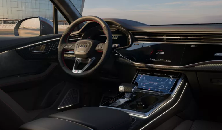 The SQ7 offers three rows of seating with room for up to seven passengers. The second row provides generous space and can be equipped with captain’s chairs for added comfort. Despite its sporty focus, the SQ7 retains practicality with flexible cargo capacity when the rear seats are folded.