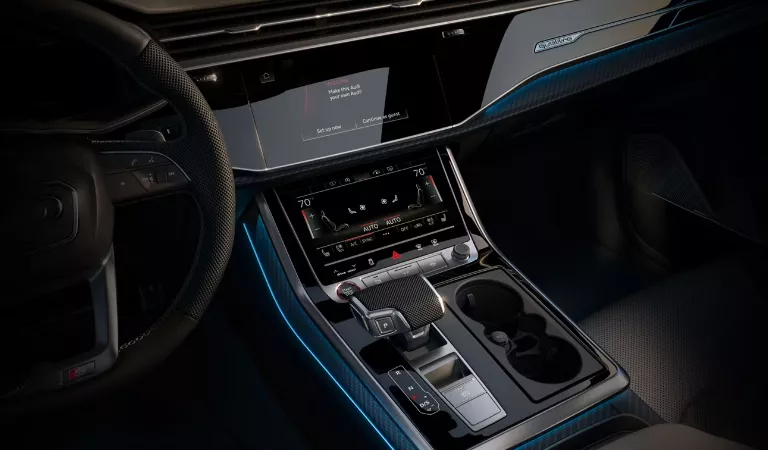 Inside the 2025 SQ8, luxury and cutting-edge technology come together to create a refined yet sporty cabin. The Valcona leather sports seats offer superior comfort and support, with heating, ventilation, and massage functions available. The drive-focused cockpit includes Audi's Virtual Cockpit Plus, a 12.3-inch digital display that provides real-time performance data, navigation, and entertainment. The MMI infotainment system features a dual touchscreen layout with haptic feedback, ensuring an intuitive user experience. A Bang & Olufsen 3D sound system delivers an immersive audio experience while ambient interior lighting sets the perfect mood. Additional premium touches include carbon fiber trim, a panoramic sunroof, and four-zone climate control, making every drive a first-class adventure.
